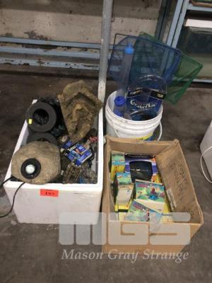 ASSORTED AQUARIUM ACCESSORIES, STONES CASTLES, LIGHTS, NETS ETC.