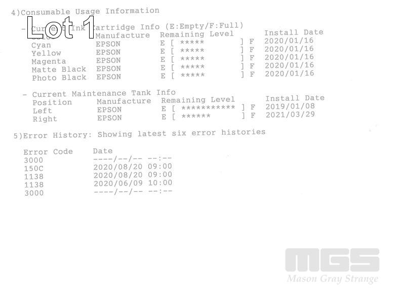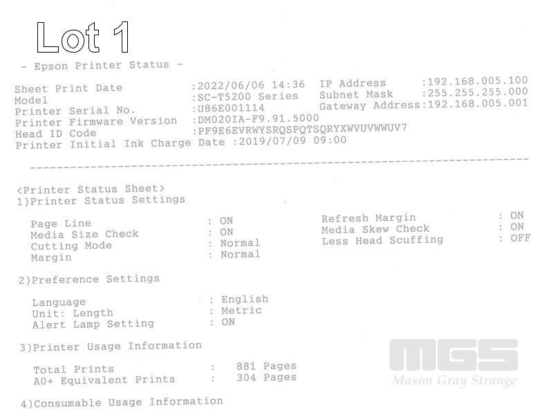 EPSON SURECOLOR T5200 36" WIDE FORMAT PRINTER, MODEL K251A, 498m2 PAPER USAGE (TEST PAGE ATTACHED) WITH SPARE PAPER ROLLS S/N:U86E001114