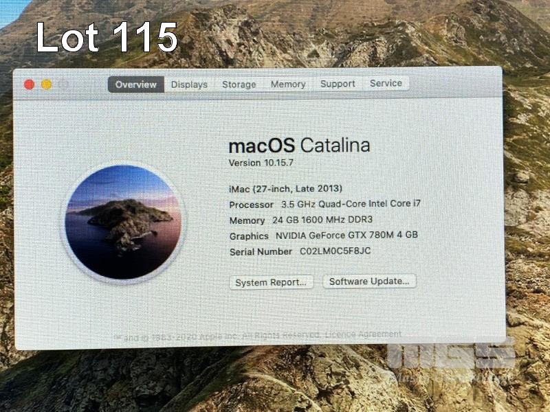 APPLE iMAC (A1419), CORE i7 4771 (4TH GEN) @ 3.5GHz, 24GB DDR3 RAM, 1.12TB FUSION DRIVE, BUILT-IN 27" DISPLAY (2560x1440), 4GB NVIDIA GEFORCE GTX 780M VIDEO, Wi-Fi, MAC OS 10.15 INSTALLED (NO KEYBOARD, NO MOUSE) S/N:C02LM0C5F8JC