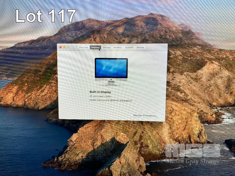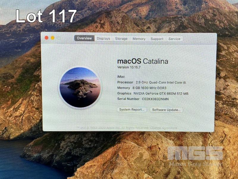 APPLE iMAC (A1419), CORE i5 3470S (3RD GEN) @ 2.9GHz, 8GB DDR3 RAM, 1TB SATA HDD, BUILT-IN 27" DISPLAY (2560x1440), 512MB NVIDIA GEFORCE 660M VIDEO, Wi-Fi, MAC OS 10.15 INSTALLED (NO KEYBOARD, NO MOUSE) (NOTE: STAND HINGE LOOSE, SCREEN TILTS FORWARD) S/N:C02KX083DNMN