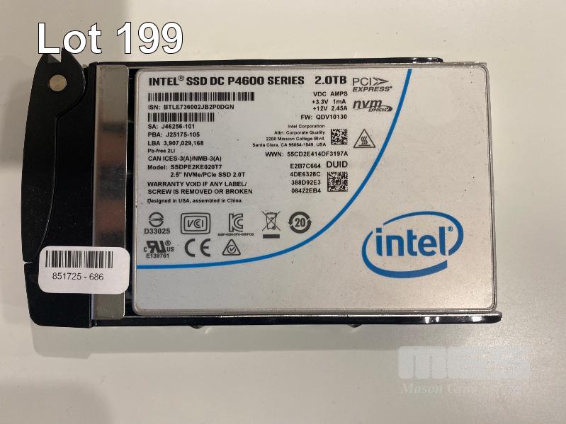 1 x INTEL 2TB NVMe/PCIe SOLID STATE DRIVE, DC P4600 SERIES, SAS, 2.5" WITH CADDY