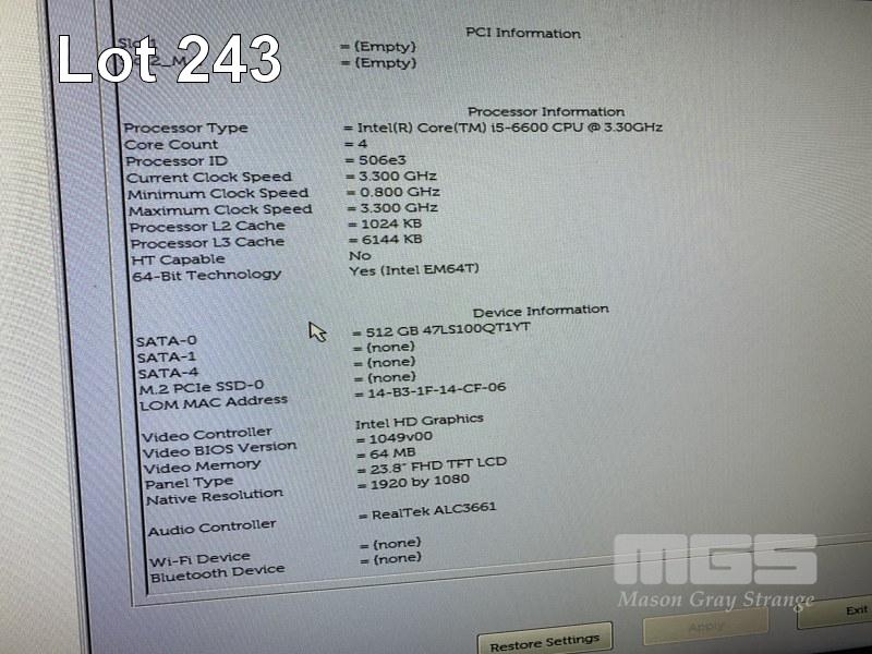 ALL-IN-ONE PC, DELL OPTIPLEX 7450, CORE i5 6600 (6TH GEN) @ 3.3GHz, 16GB DDR4 RAM, 512GB SSD, INBUILT 23.8" FHD WIDESCREEN (1920x1080), INTEL HD VIDEO, WEBCAM, 7 x USB, 1 x USB-C, WINDOWS 10 HOME INSTALLED, KEYBOARD & MOUSE S/N:4BNYCK2
