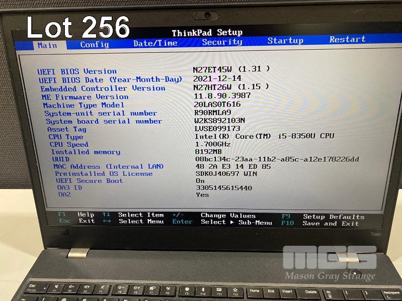 LAPTOP, LENOVO THINKPAD T580, TYPE 20LA, CORE i5 8350U (7TH GEN) @ 1.7GHz, 8GB DDR4 RAM, 256GB NVMe M.2 SSD, 15.6" WIDESCREEN (1920x1080), INTEL UHD GRAPHICS, Wi-Fi, BLUETOOTH, WINDOWS 11 PRO INSTALLED & USB-C POWER SUPPLY (NOTE: MARKS ON SCREEN) S/N:R90RMLA9