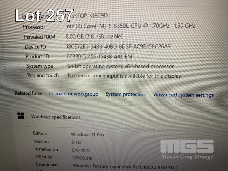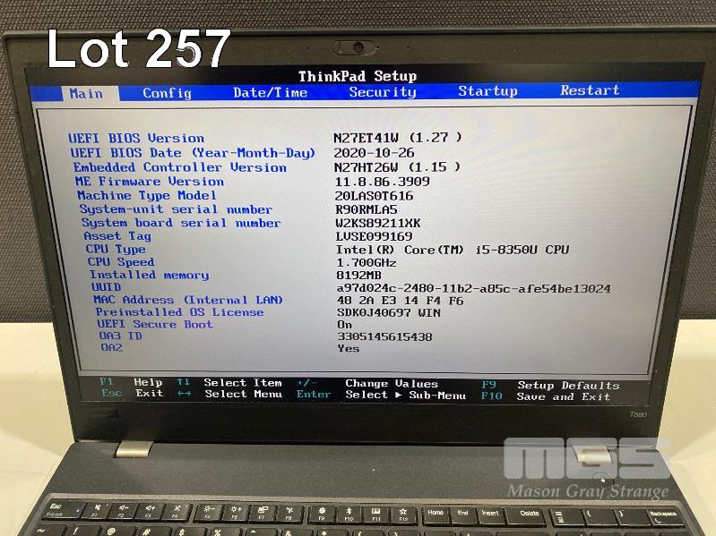 LAPTOP, LENOVO THINKPAD T580, TYPE 20LA, CORE i5 8350U (7TH GEN) @ 1.7GHz, 8GB DDR4 RAM, 256GB NVMe M.2 SSD, 15.6" WIDESCREEN (1920x1080), INTEL UHD GRAPHICS, Wi-Fi, BLUETOOTH, WINDOWS 11 PRO INSTALLED & USB-C POWER SUPPLY (NOTE: MARKS ON SCREEN) S/N:R90RMLA5