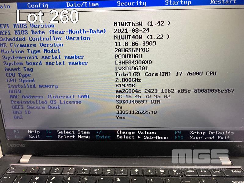 LAPTOP, LENOVO THINKPAD T470s, TYPE 20HG, CORE i7 7600U (7TH GEN) @ 2.8GHz, 8GB DDR4 RAM, 512GB NVMe M.2 SSD, 14" TOUCHSCREEN (1920x1080), INTEL HD VIDEO, Wi-Fi, BLUETOOTH, WINDOWS 10 PRO INSTALLED & POWER SUPPLY (NOTE: MARKS ON SCREEN, TOUCHPAD WORN) S/N:PC0UKUGH