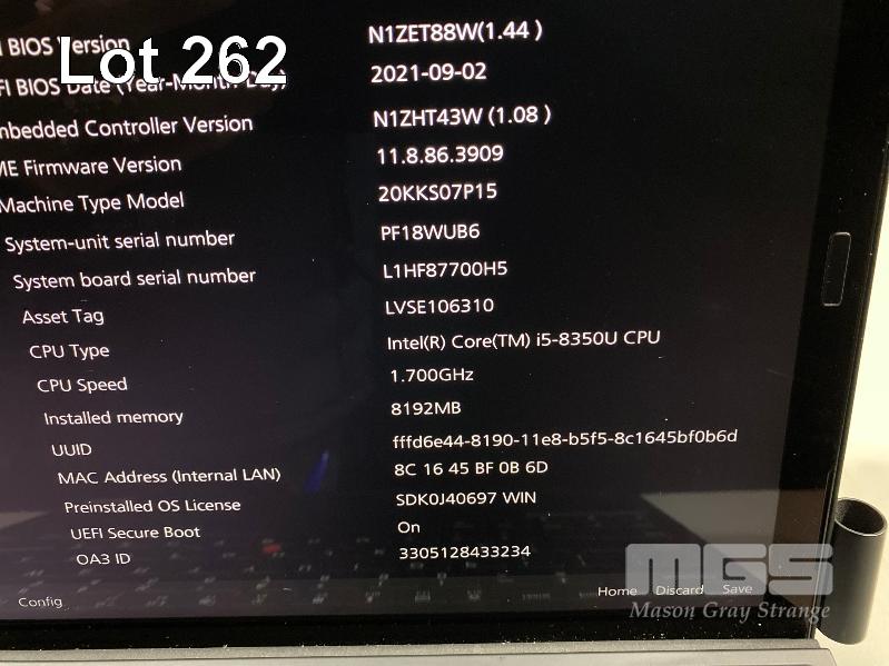 TABLET PC, LENOVO THINKPAD X1 (3RD GEN), TYPE 20KK, CORE i5 8350U (8TH GEN) @ 1.7GHz, 8GB DDR4 RAM, 256GB NVMe SSD, 13" TOUCHSCREEN (3000x2000), INTEL UHD GRAPHICS 620, Wi-Fi, BLUETOOTH, WINDOWS 11 PRO INSTALLED, KEYBOARD & USB-C POWER SUPPLY (NOTE: MARKS ON SCREEN, NO STYLUS) S/N:PF18WUB6