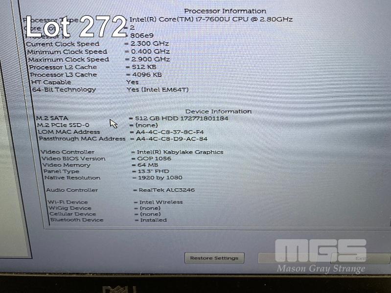 LAPTOP, DELL LATITUDE 7380, CORE i7 7600U (7TH GEN) @ 2.8GHz, 16GB DDR4 RAM, 512GB M.2 SSD, 13.3" WIDESCREEN (1920x1080), INTEL KABYLAKE GRAPHICS, Wi-Fi, BLUETOOTH, WINDOWS 10 HOME INSTALLED & POWER SUPPLY S/N:8BT43M2
