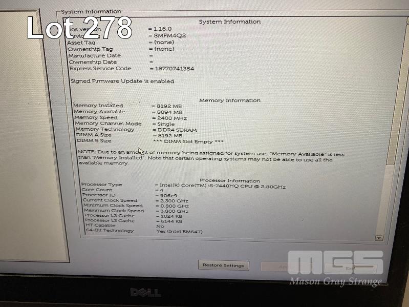 LAPTOP, DELL LATITUDE 5480, CORE i5 7440HQ (7TH GEN) @ 2.9GHz, 8GB DDR4 RAM, 512GB M.2 SSD, 14" WIDESCREEN (1920x1080), INTEL KABYLAKE GRAPHICS, Wi-Fi, BLUETOOTH, WINDOWS 10 HOME INSTALLED & POWER SUPPLY (NOTE: NO BATTERY, MARKS ON SCREEN) S/N:8MFM4Q2