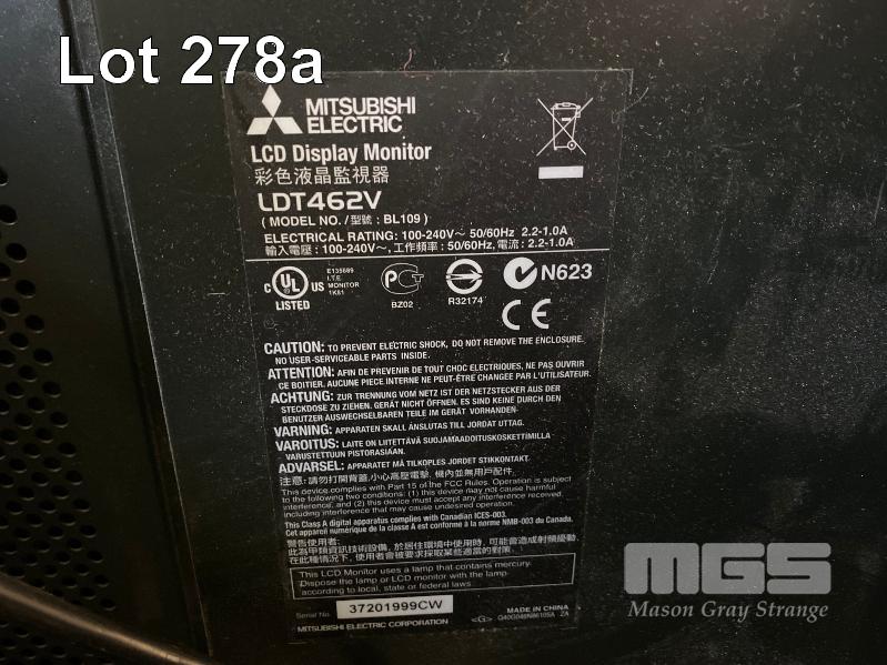 MONITOR, MITSUBISHI LDT462V 46" COMMERCIAL LCD DISPLAY WITH TOUCHSCREEN OVERLAY (NO REMOTE, NO STAND) S/N:37201999CW