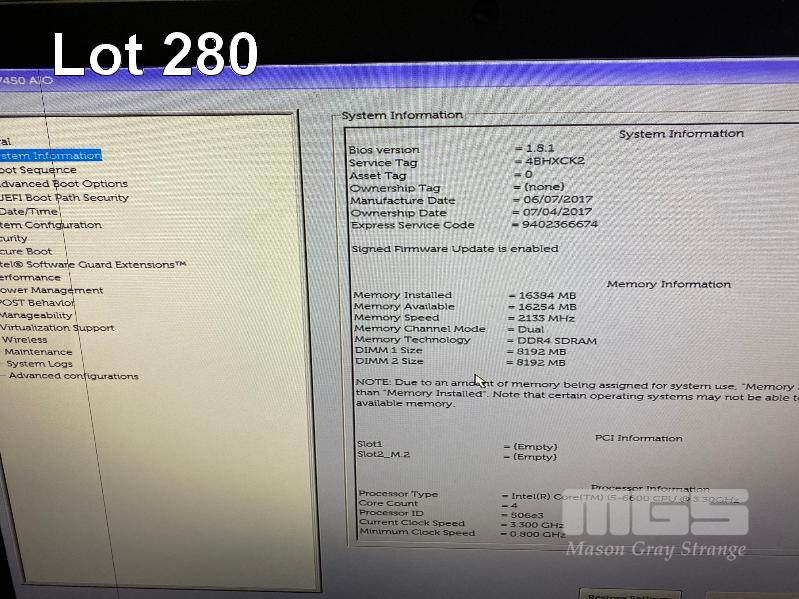 ALL-IN-ONE PC, DELL OPTIPLEX 7450, CORE i5 6600 (6TH GEN) @ 3.3GHz, 16GB DDR4 RAM, 512GB SSD, INBUILT 23.8" FHD WIDESCREEN (1920x1080), INTEL HD VIDEO, WEBCAM, 7 x USB, 1 x USB-C, WINDOWS 10 HOME INSTALLED, KEYBOARD & MOUSE (NOTE: LINE ON SCREEN) S/N:4BHXCK2
