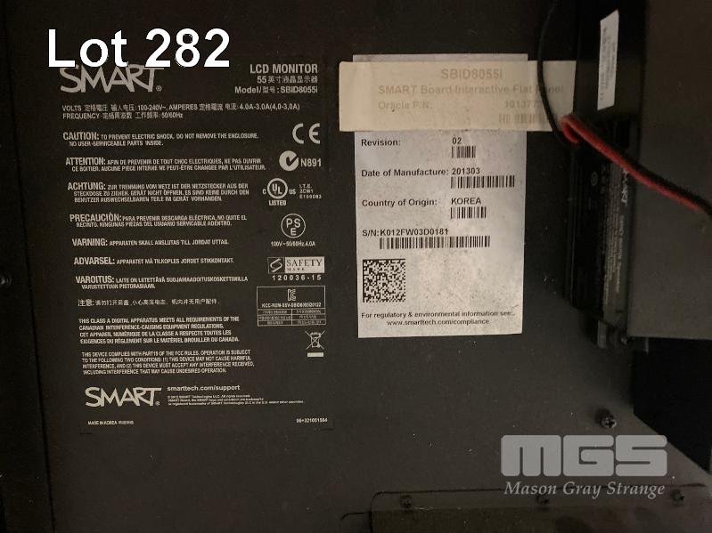 MONITOR, SMART BOARD 55" COMMERCIAL LCD TOUCH DISPLAY, MODEL SBID8055i, HDMI INPUT (NO REMOTE, NO STAND) S/N:K012FW03D0181