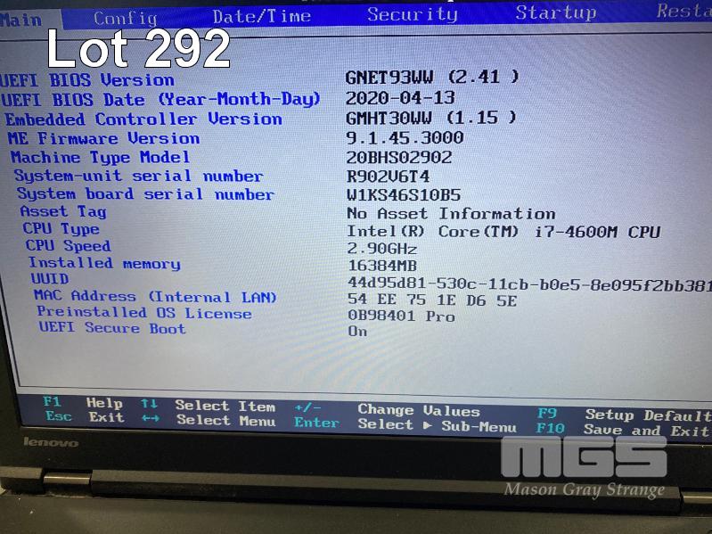 LAPTOP, LENOVO THINKPAD W540, TYPE 20BH, CORE i7 4600M (4TH GEN) @ 2.9GHz, 16GB DDR3 RAM, 500GB SATA HDD, DVD-RW, 15.6" WIDESCREEN (1920x1080), INTEL HD VIDEO, 2GB NVIDIA QUADRO K1100M VIDEO, Wi-Fi, BLUETOOTH, WINDOWS 10 PRO INSTALLED & POWER SUPPLY (NOTE: MARKS ON SCREEN, KEYBOARD FAULT - SOME KEYS NOT WORKING) S/N:R902V6T4