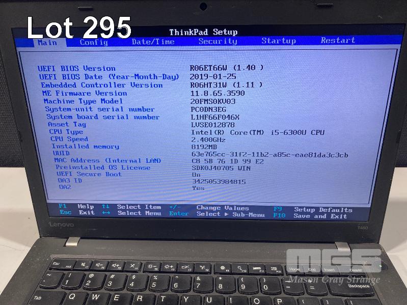 LAPTOP, LENOVO THINKPAD T460, TYPE 20FM, CORE i5 6300U (6TH GEN) @ 2.4GHz, 8GB DDR3 RAM, 275GB SSD, 14" WIDESCREEN (1366x768), INTEL HD VIDEO, Wi-Fi, BLUETOOTH, WINDOWS 10 PRO INSTALLED & POWER SUPPLY (NOTE: MARKS ON SCREEN) S/N:PC0DN3EG