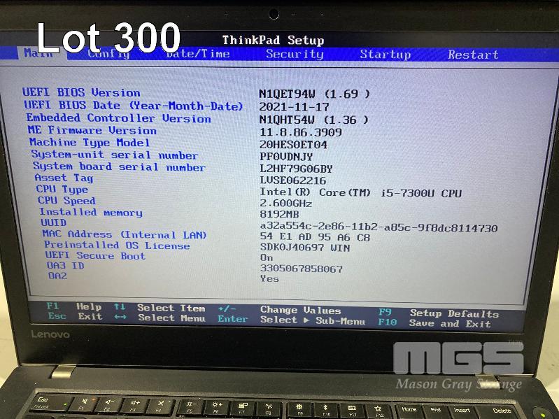 LAPTOP, LENOVO THINKPAD T470, TYPE 20HE, CORE i5 7300U (7TH GEN) @ 2.6GHz, 8GB DDR4 RAM, 512GB NVMe M.2 SSD, 14" WIDESCREEN (1366x768), INTEL HD VIDEO, Wi-Fi, BLUETOOTH, WINDOWS 10 PRO INSTALLED & POWER SUPPLY (NOTE: WHITE SPOT SCREEN BLEMISH, DAMAGE TO USB PORT RHS) S/N:PF0VDNJY