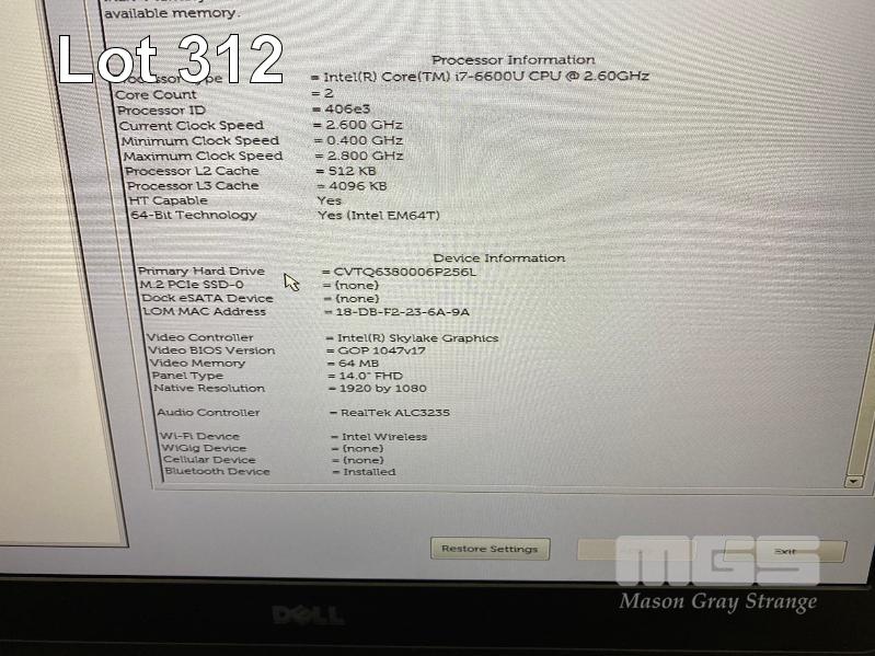 LAPTOP, DELL LATITUDE E7470, CORE i7 6600U (6TH GEN) @ 2.6GHz, 16GB DDR4 RAM, 256GB M.2 SSD, 14" WIDESCREEN (1920x1080), INTEL SKYLAKE GRAPHICS, Wi-Fi, BLUETOOTH, WINDOWS 10 HOME INSTALLED & POWER SUPPLY (NOTE: WHITE SPOT SCREEN BLEMISH) S/N:CFFDRC2