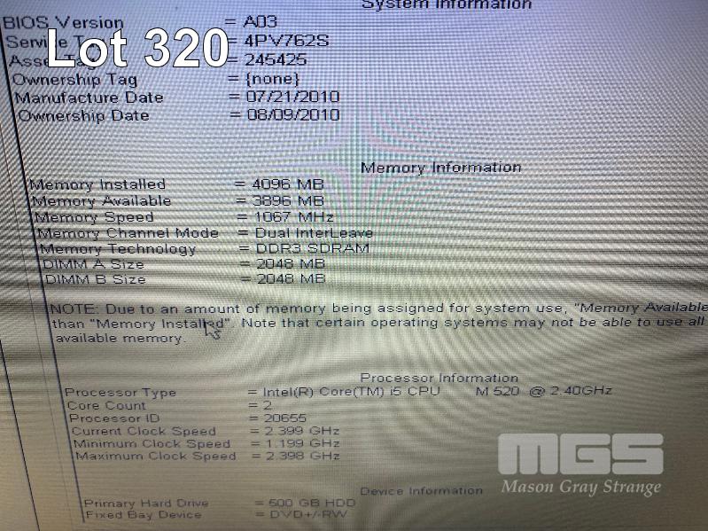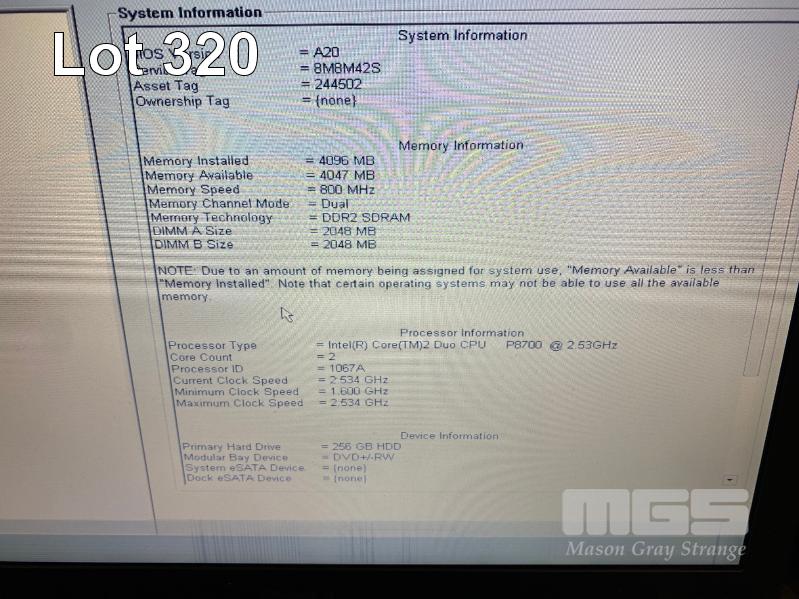 3 x LAPTOPS INC. DELL LATITUDE E4310, CORE i5 M520 @ 2.4GHz, 4GB RAM, 500GB HDD DELL LATITUDE E6400, CORE 2 DUO P8700 @ 2.53GHz, 4GB RAM, 256GB SSD (SCREEN DISPLAY ISSUE, MISSING ARROW KEY) DELL LATITUDE E6500, CORE 2 DUO P8700 @ 2.53GHz, 4GB RAM, 250GB HDD (BATTERY NOT CHARGING) (NO POWER SUPPLIES) S/N:4PV762S, 8M8M42S, 1FVH52S