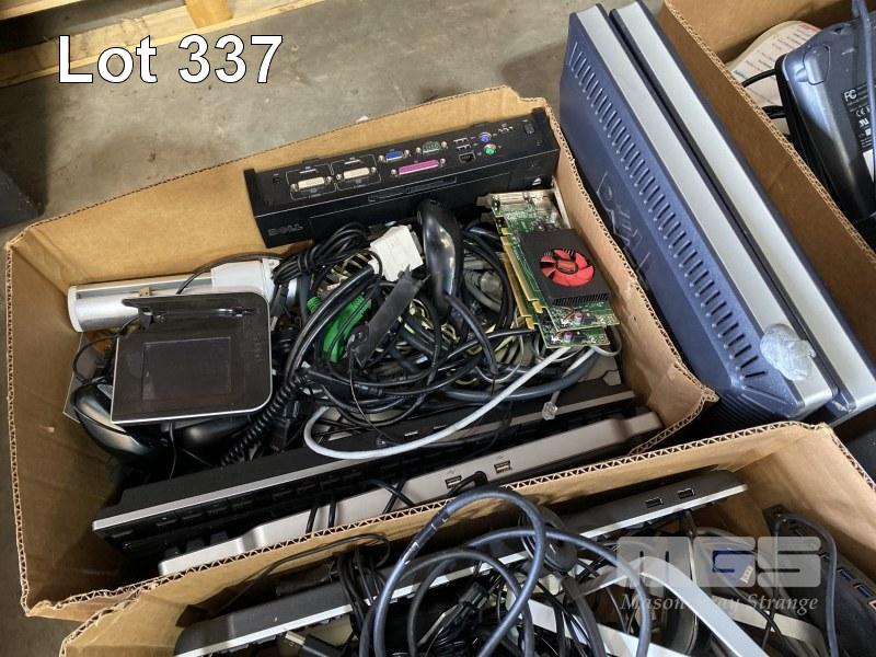 1 x PALLET LOT ASST CABLES, KEYBOARDS, DOCKING STATIONS, LAPTOP BAGS, NETWORK CABLES ETC