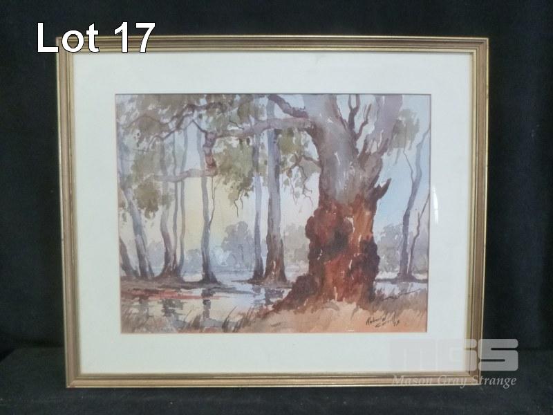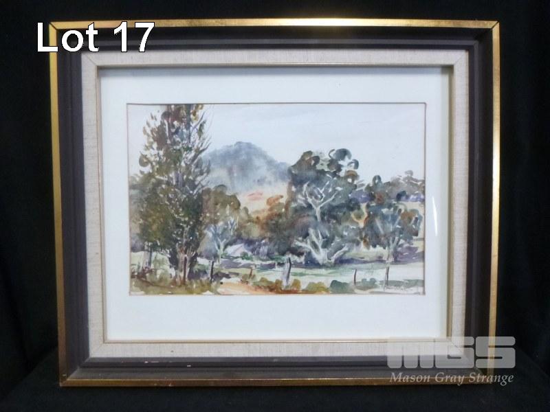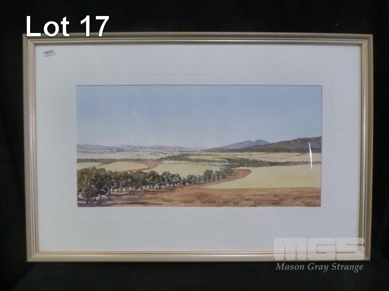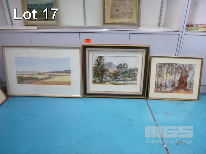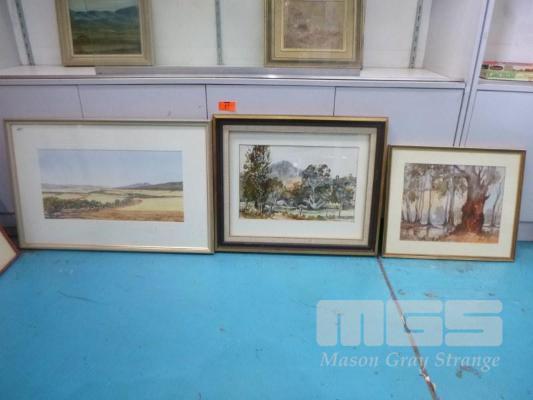 3 x FRAMED WATER COLOURS INC LANDSCAPE BY ROBERT CORRELL, 1973, MT BARKER FARM BYHUNE COLLIGAN & LANDSCAPE BY MARY TROTT