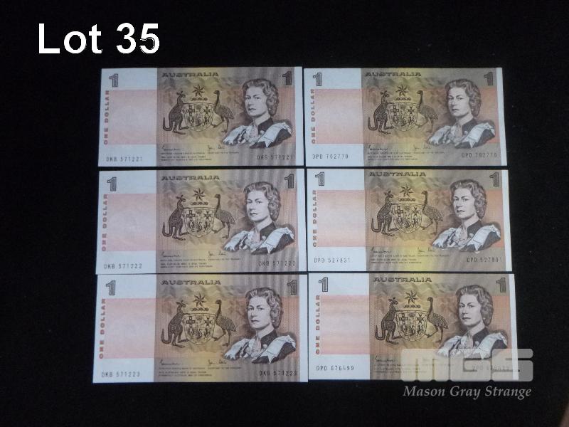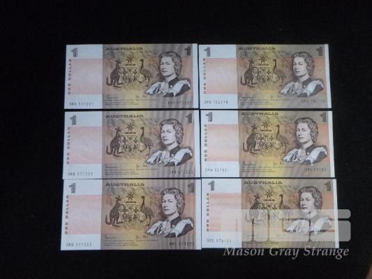 6 X 1982, AUSTRALIA, UNCIRCULATED, $1 BANKNOTES, JOHNSTON/STONE, 3 X CONSECUTIVE