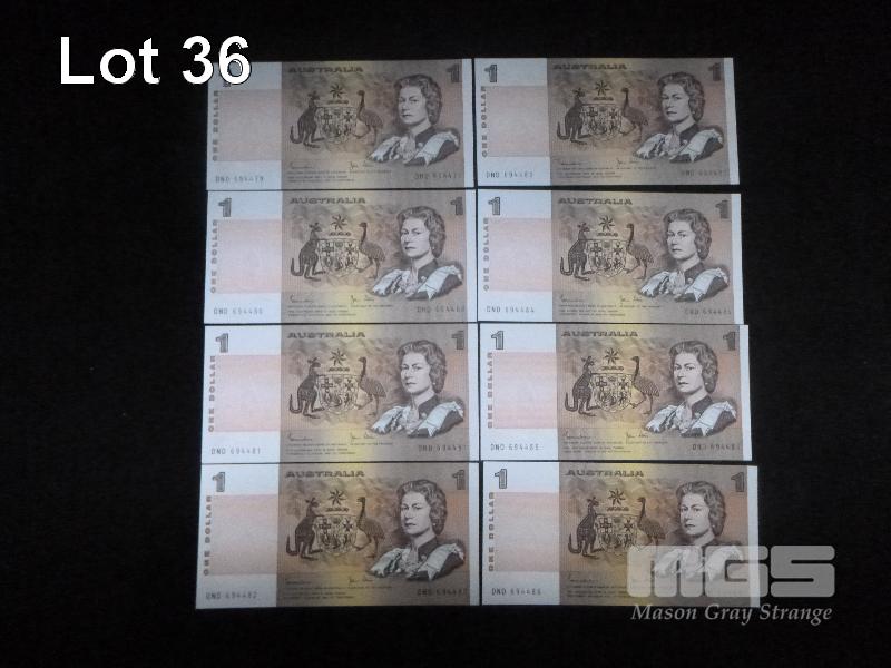 8 X 1982, AUSTRALIA, UNCIRCULATED, CONSECUTIVE, $1 BANKNOTES, JOHNSTON/STONE, DND 694479-486