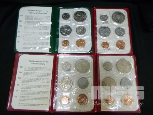 4 X ROYAL AUSTRALIAN MINT, UNCIRCULATED COIN PACKS, INC; 2 X 1980, 1 X 1981, 1 X 1982 XII COMMONWEALTH GAMES BRISBANE