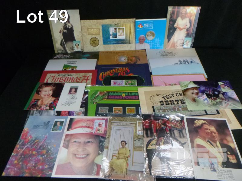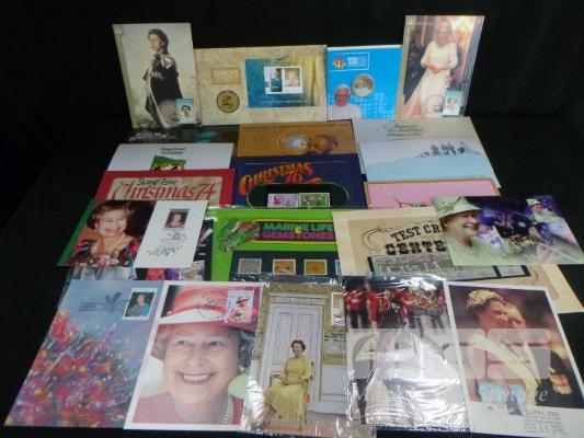 2008, WORLD YOUTH DAY, COMMEMORATIVE, $1 COIN PACK, 2011, $1 COIN/ FIRST DAY COVER, 'QUEENS 84th BIRTHDAY', WITH ASSORTED MINT STAMP SETS & POSTCARDS