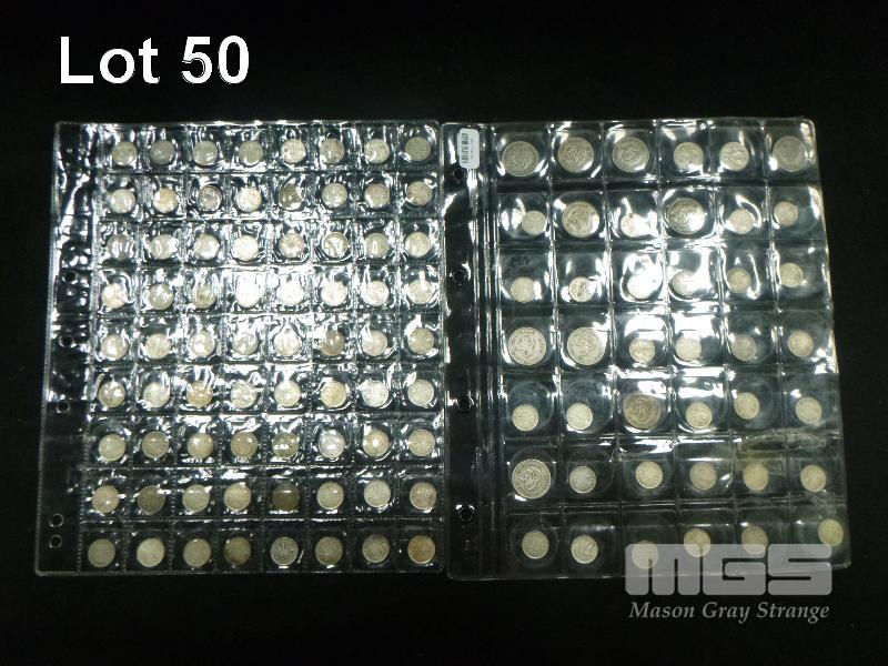 2 X SHEETS OF AUSTRALIA PRE-DECIMAL COINS, INC; THREE-PENCE, SIX-PENCE, SHILLINGS
