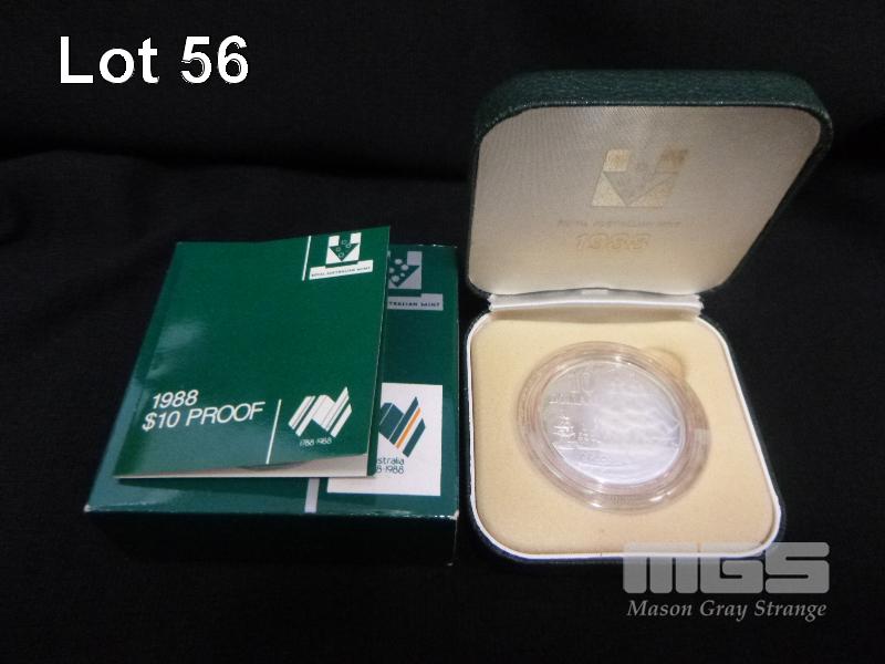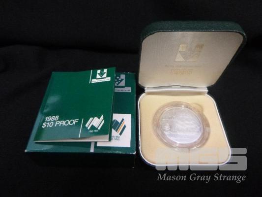 ROYAL AUSTRALIAN MINT, 1988, $10 SILVER PROOF COIN, 'GOVERNER PHILLIP AT PORT JACKSON' 20 grams 92.5% SILVER