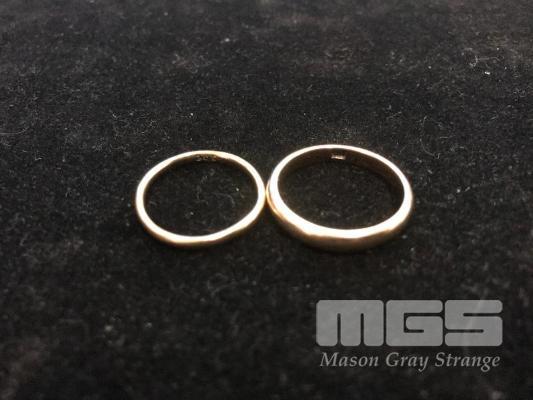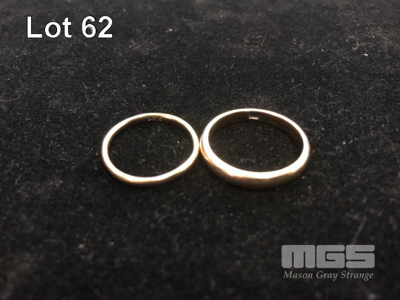 2 X GOLD WEDDING BANDS, MARKED 9 CT 5.5 GMS TOTAL
