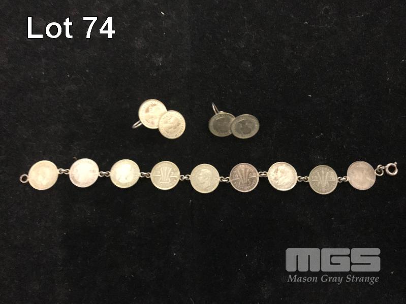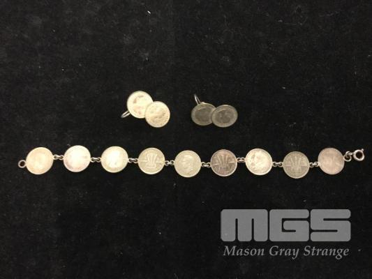 BRACELET & EARRING SET, MADE FROM AUSTRALIAN THREE PENCE COINS, ASSORTED YEARS