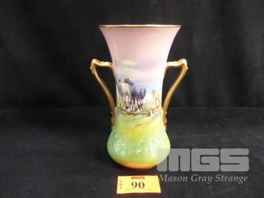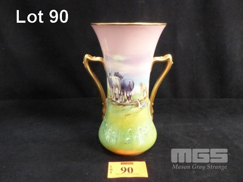 ROYAL DOULTON, HANDLED VASE, HORSE & PLOUGH, 21cm (H)