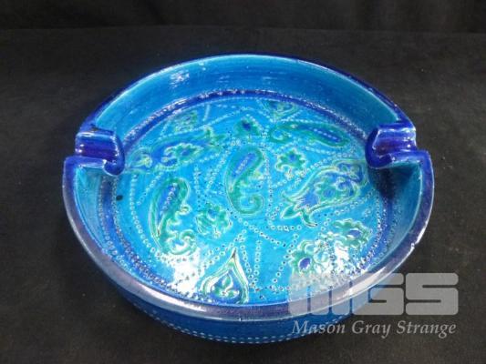 GLAZED, BLUE BITOSSI CIGAR/ASHTRAY. 24.5cm DIAMETER, MARK ON BASE READS, 69/21B ITALY