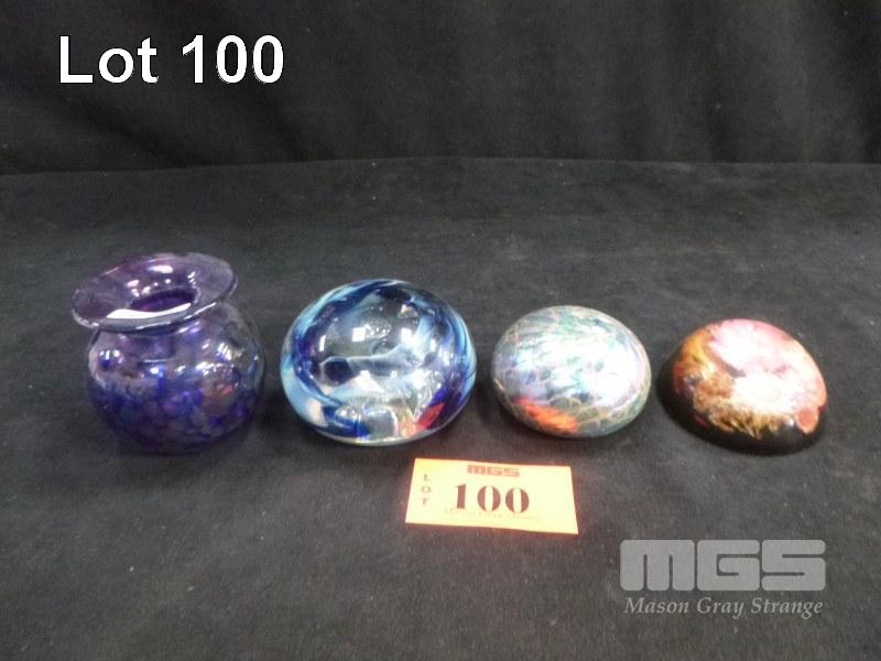 2 x GLASS & 1 x RESIN PAPERWEIGHTS & SMALL ART GLASS BOWL