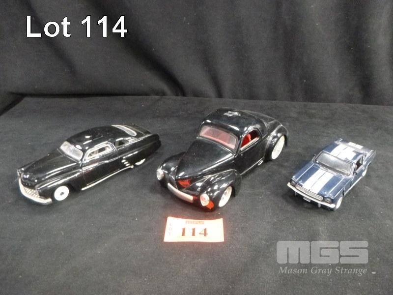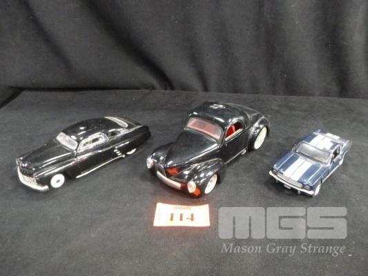 3 X MODEL CARS, 1 X 1941 WILLY'S COUPE, FORD MUSTANG & 1949 FORD MERCURY