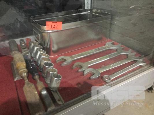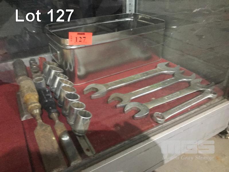 ASSORTED HAND TOOLS & SOCKETS INC KING DICK, SIDCHROME & CRAFTSMAN SPANNERS CHISELS, PRYBAR ETC