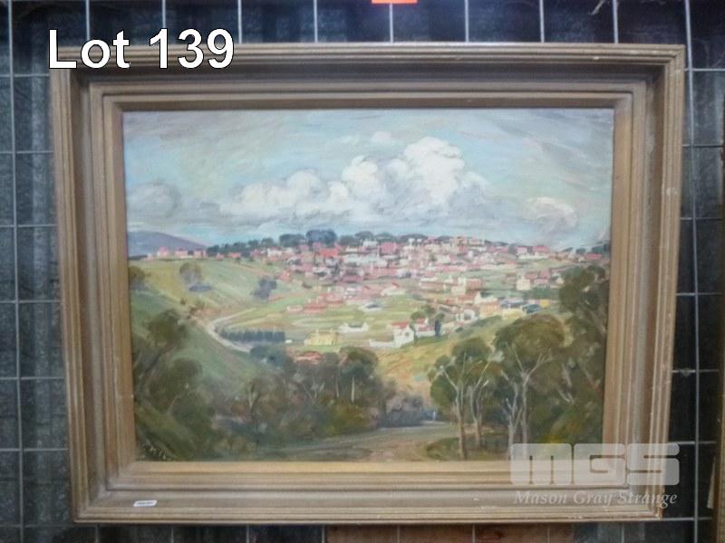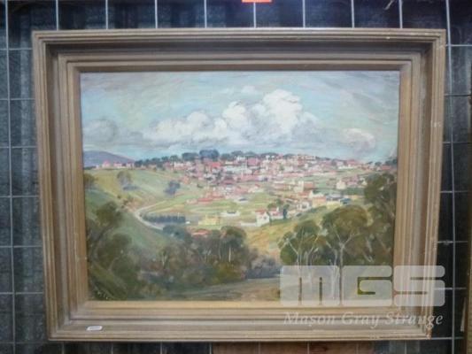 FRAMED OIL ON CANVAS VICTORIAN TOWNSHIP BY R.C. MCCANN