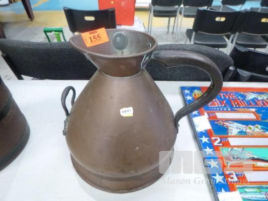 VINTAGE 2 GALLON COPPER JUG, AMERICA SQUARES, LONDON