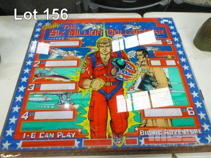 ORIGINAL BALLY PINBALL GLASS BACKING FOR THE SIX MILLION DOLLAR MAN PINBALL MACHINE