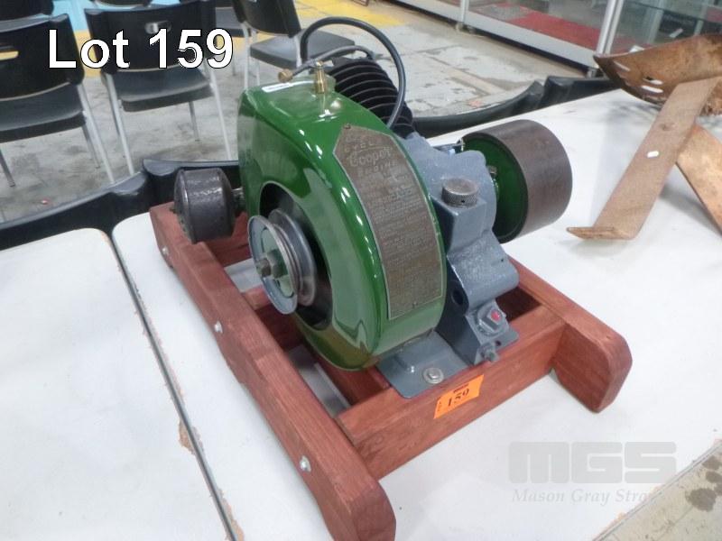 VINTAGE COOPER CYCLE ENGINE ON TIMBER FRAME, TYPE: RV 1HP, SPEED: 2100RPM MADE IN AUSTRALIA