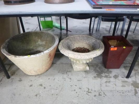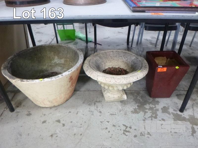 2 x CONCRETE GARDEN POTS & 1 x GLAZED