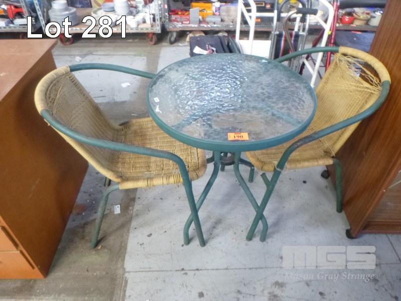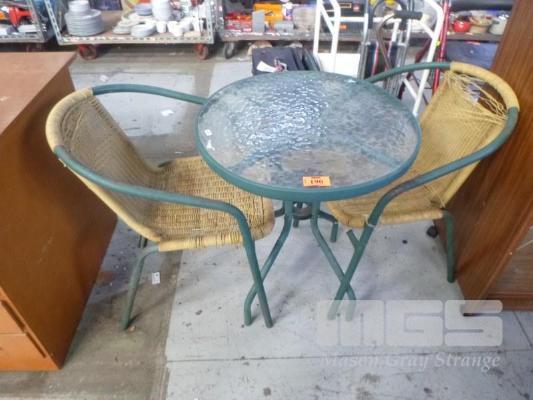 ALUMINIUM FRAME 3 PIECE PATIO SETTING INC ROUND TABLE & 2 x ARM CHAIRS