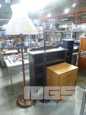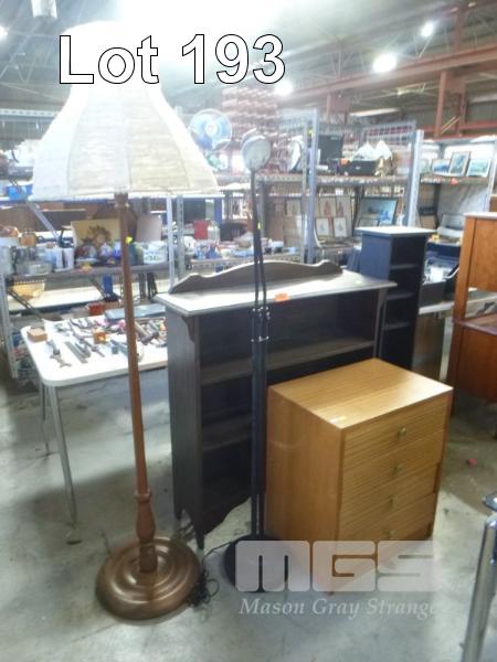 2 x STANDARD LAMPS, BOOKCASE, DVD/CD TOWER & BEDSIDE CABINET