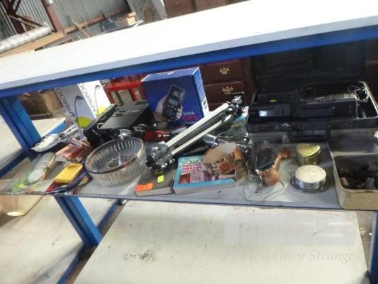 SONY VIDEO 8 CAMERA, HANIMEX SLIDE PROJECTOR, TRIPOD, CARDS, ETC