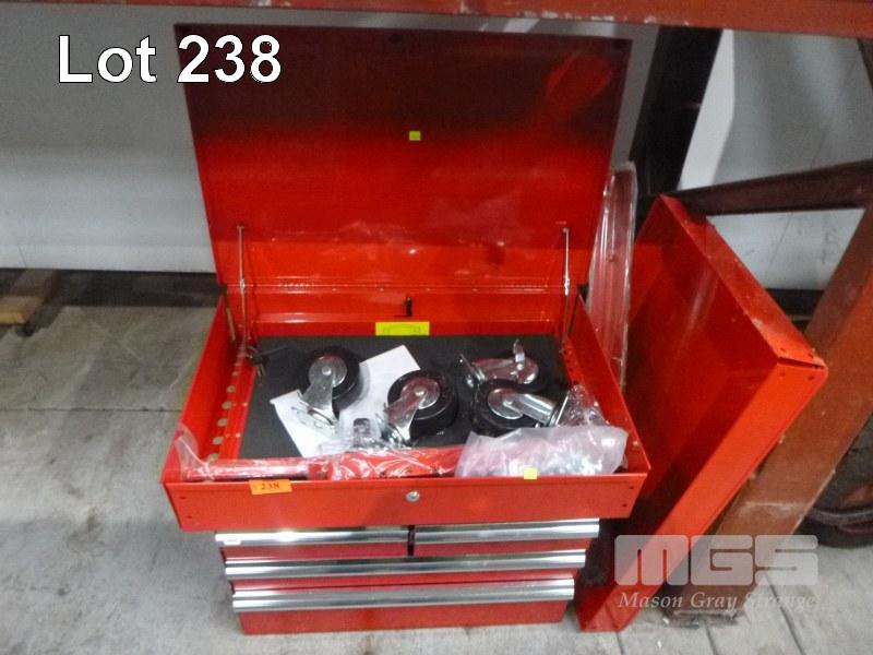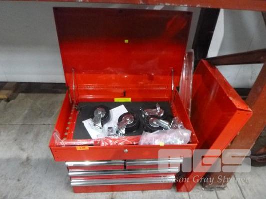 RED METAL WORKSHOP TOOLBOX, (ASSEMBLY REQUIRED)