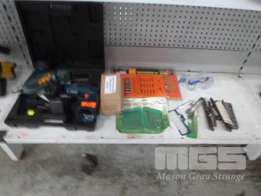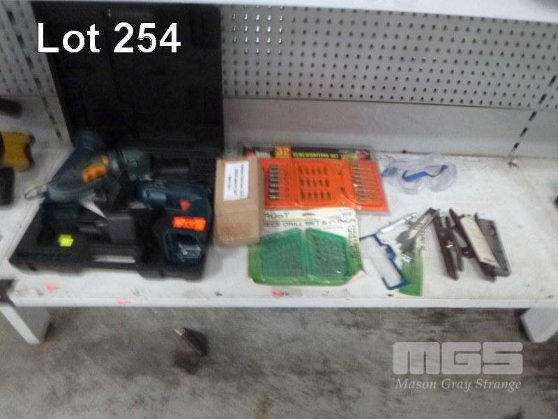 BLACK & DECKER CORDLESS DRILL, CHARGER & BATTERY, UNVERSAL CUTTER, DRILL BITS, ETC