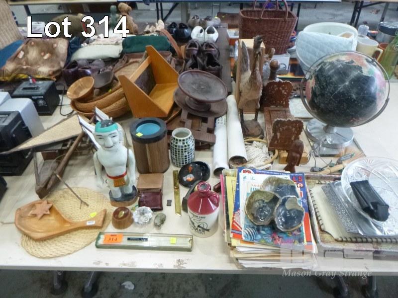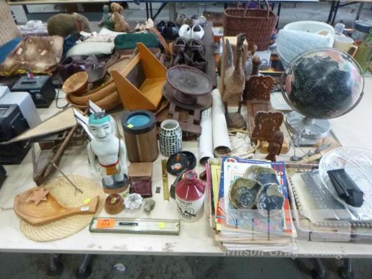 ASSORTED TREEN, WORLD GLOBE, ETC, 1 x TABLE