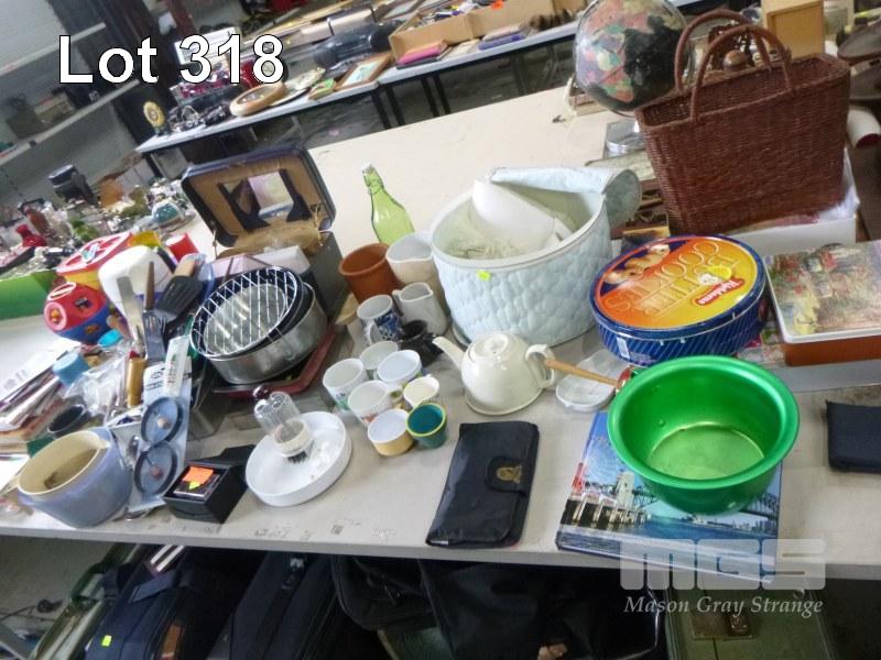 ASSORTED COOKWARE, BOOKS, TINS, ETC