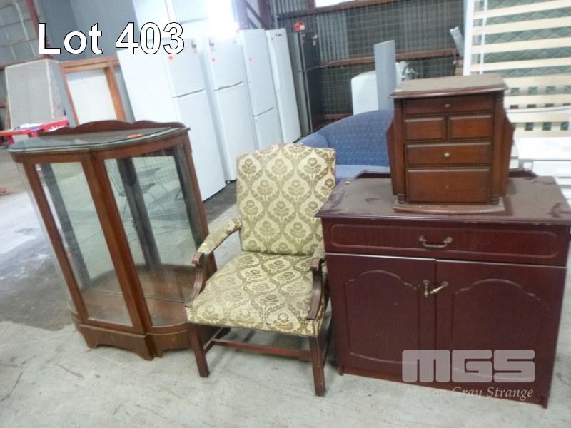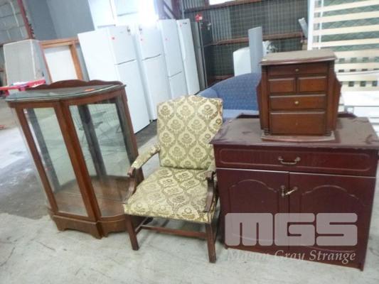 CHINA CABINET, ARMCHAIR, SIDEBOARD & CABINET