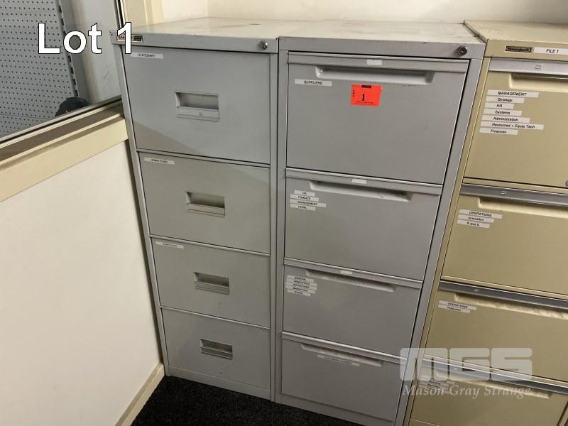 2 x GREY, 4 DRAWER , STEEL FILING CABINETS