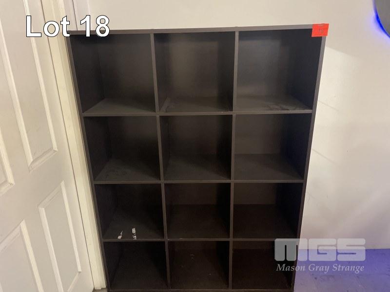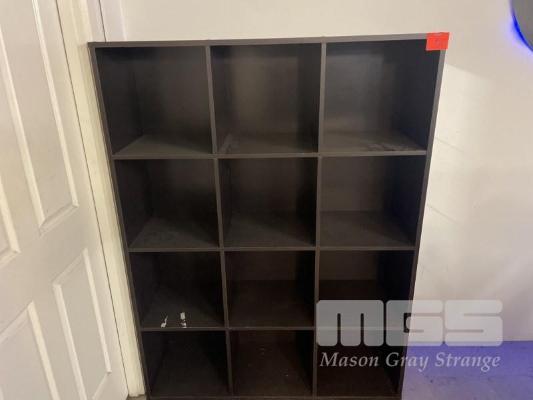 12 HOLE PIGEON HOLE UNIT, LAMINATE & MATCHING SIDE TABLE, TUBE STEEL FRAME